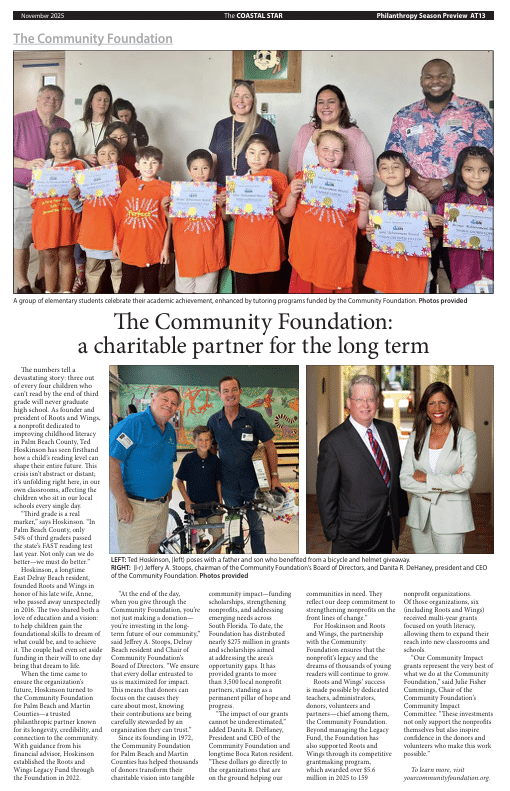 “At the end of the day, when you give through the Community Foundation, you’re not just making a donation—you’re investing in the long-term future of our community,” said Jeffrey A. Stoops, Delray Beach resident and Chair of Community Foundation’s Board of Directors. “We ensure that every dollar entrusted to us is maximized for impact. This means that donors can focus on the causes they care about most, knowing their contributions are being carefully stewarded by an organization they can trust.”